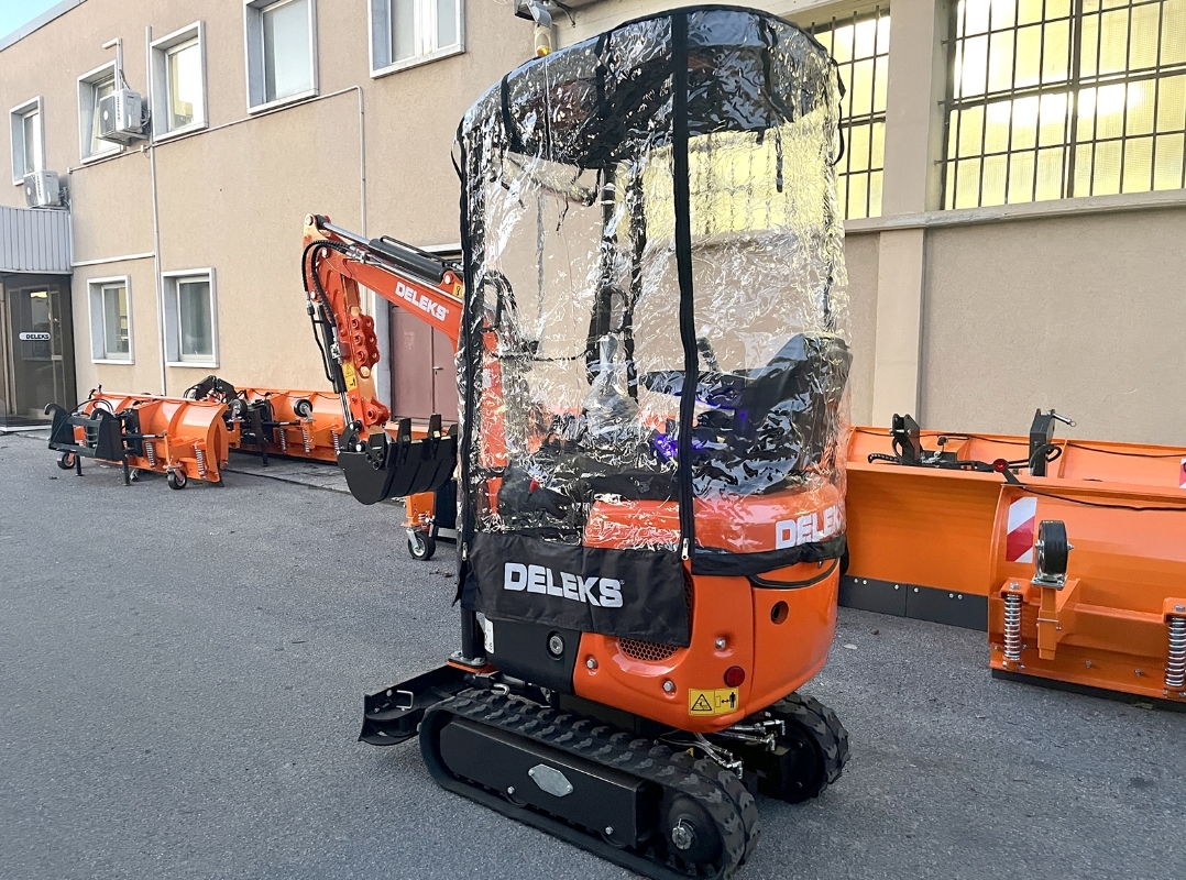 Мягкая кабина на миниэкскаватор Deleks - удобная практичность от дождя и ветра. Тент-Дождевик для мини-экскаватора.