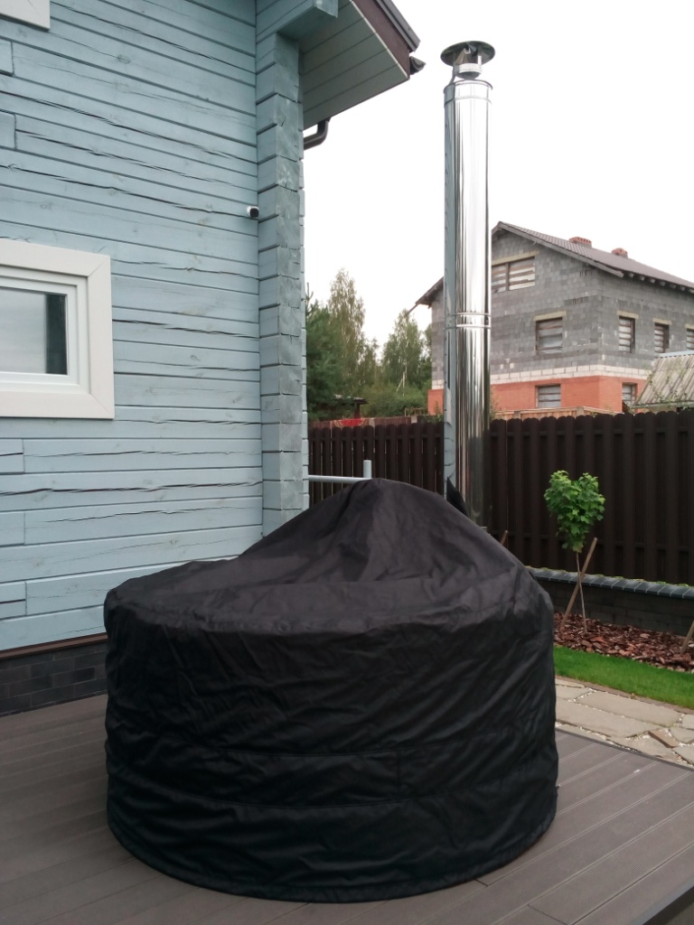 Пребывание купели из дерева под открытым небом может привести к тому, что внутри скопится огромное количество пыли и мусора. Кроме того, снег с дождём не сделают состояние купели лучше. Из-за постоянной сырости может появиться плесень. Из-за долгого контакта с водой дерево просто почернеет. Однако, этого вы можете избежать в этом случае, если будете накрывать купель при помощи специального тента. У нас вы можете заказать чехол на купель. В конструкции есть специальная липучка, а также резинка, предназначенная для лёгкого стягивания. Чехлы на купель с юбками обеспечивают надёжную фиксацию и аккуратное прилегание к стенкам купели.