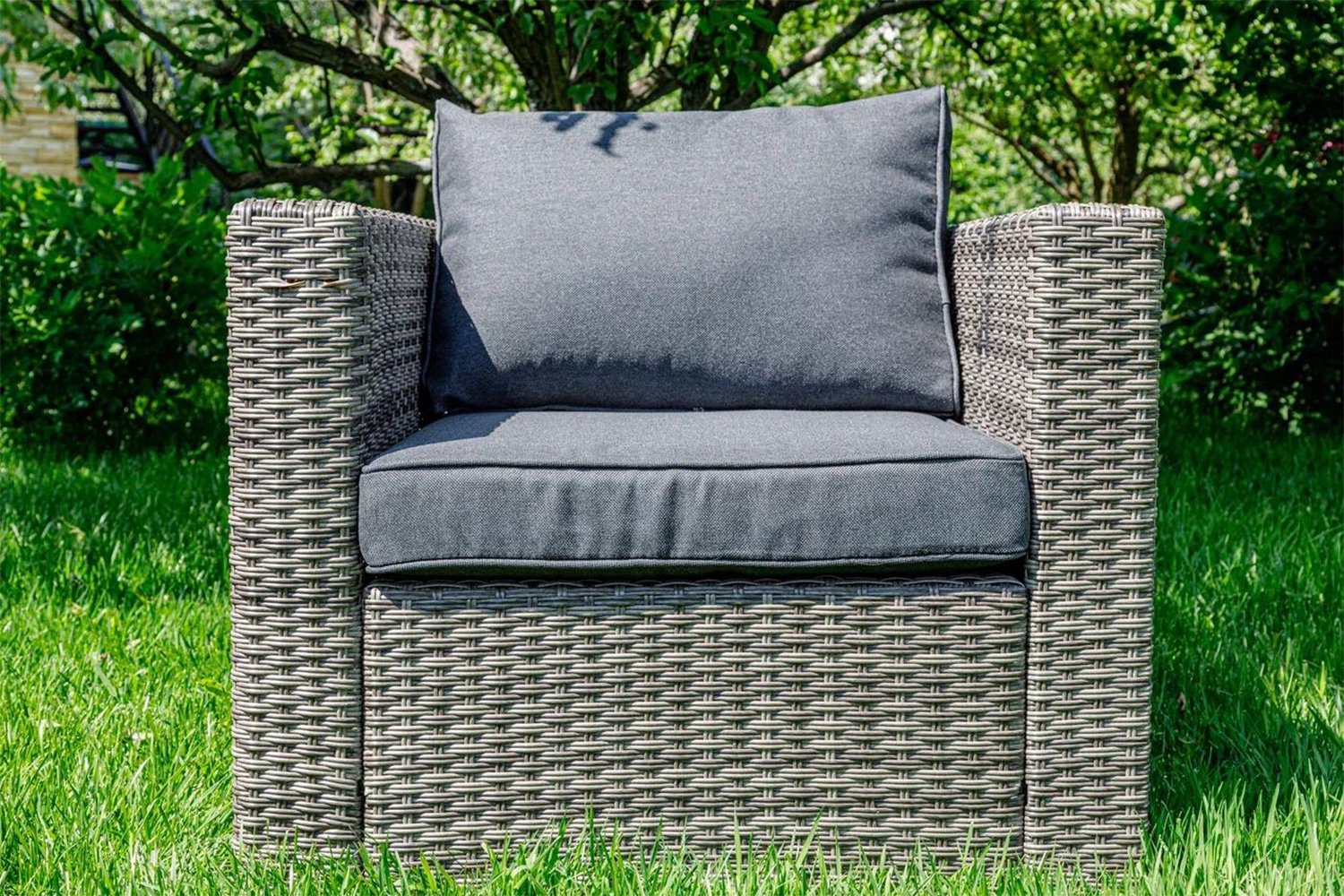 Комплект мебели серого цвета – минималистичный и не вызывающий дизайн мебели в сад.