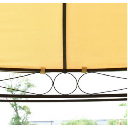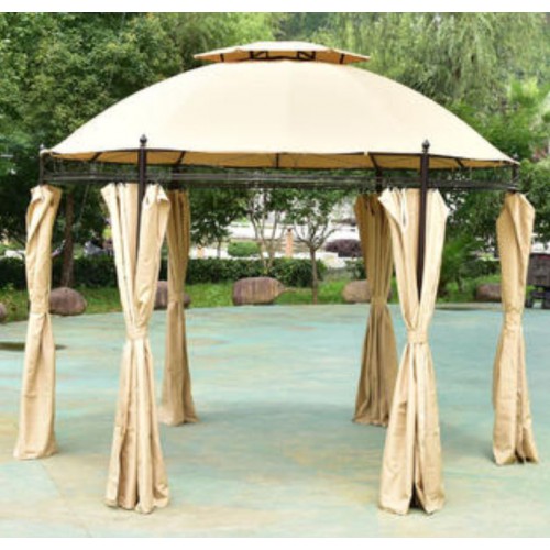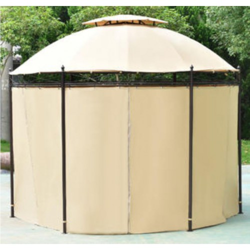У нас вы можете приобрести круглую крышу, предназначенную для павильона, такая крыша имеет двойной вверх. У неё бежевый цвет, а также диаметр 3,5 метра. Также вы можете выбрать и другие цвета на выбор, например молочный, бежевый, цвет кофе с молоком, зелёный, а также коричневый. Изготовлена данная крыша из такого материала, как Оксфорд, а весит эта крыша всего 4 кг. Такая элегантная шестиугольная беседка будет смотреться очень дорого и очень стильно. Она состоит из шести опор, есть вентилируемая крыша, предназначенная для того, чтобы через неё лучше проходил воздух. Боковые стенки могут спасти вас от ветра и дождя.