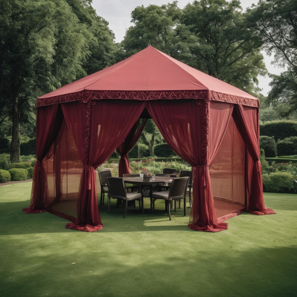 Уличные москитные сетки для шестигранной беседки из Оксфорда бордовые