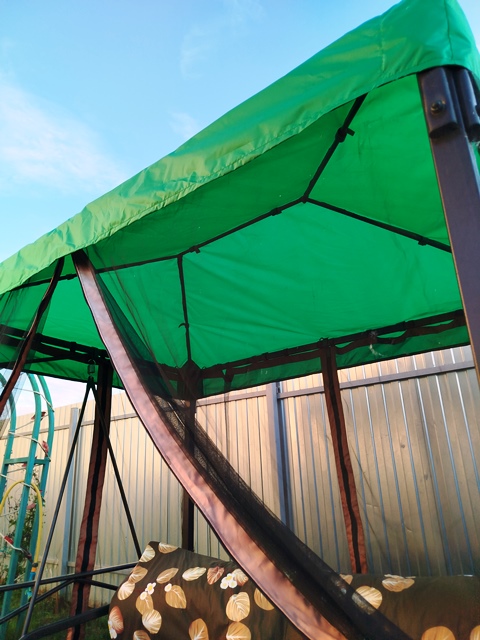 Тент крыша с москитной сеткой на качели-павильон садовые Эдельвейс, цвет зеленый