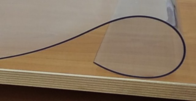 Прозрачная плёнка ПВХ 2000 мкм на отрез, ширина 1.4 м (толщина 2 мм). Применяется так же для защиты мебели, столов.